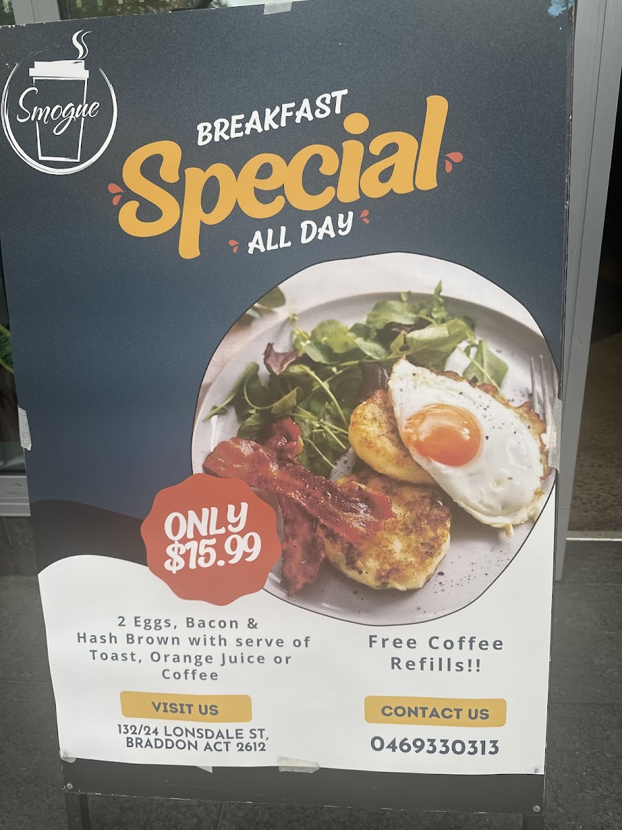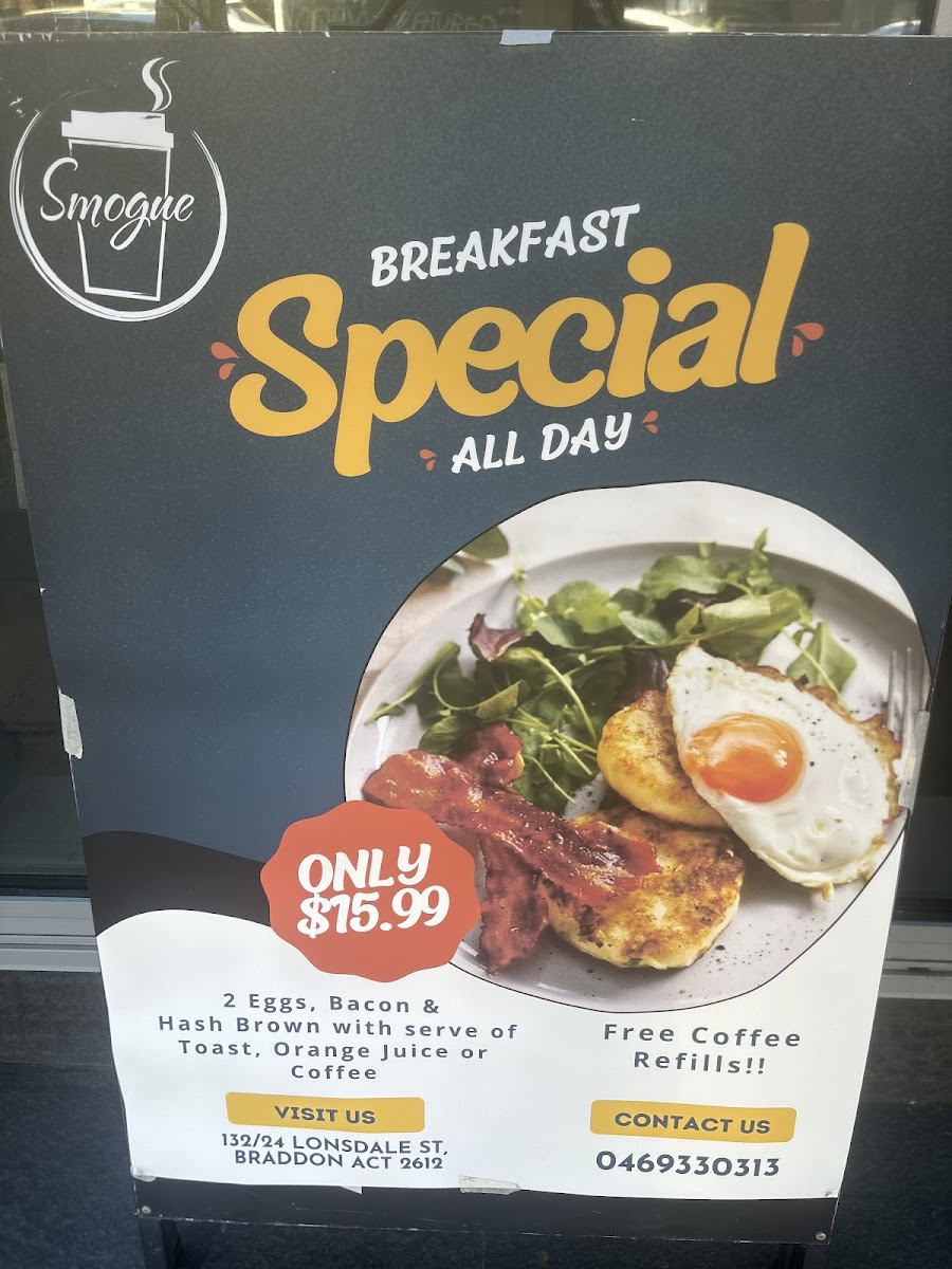 Smogue also offers appealing combo deals, like the Bacon and Egg Roll served with a Red Bull for a delightful A$11.99. Customer reviews reflect a warm ambiance and exceptional service, with many praising the large portions and value for money. It’s an inviting spot where the food is fresh, and the atmosphere is cozy. Don’t miss the chance to indulge!